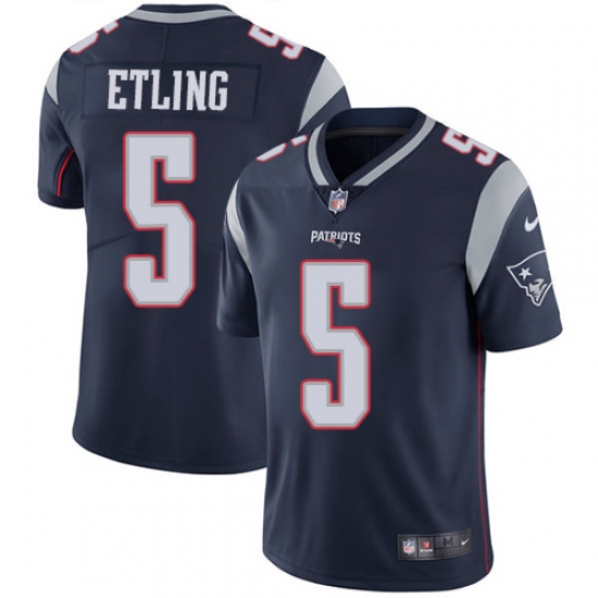 Youth Nike New England Patriots #5 Danny Etling Limited Navy Blue Rush Vapor Untouchable NFL Jersey