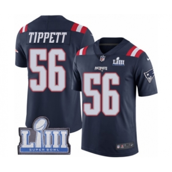 >Youth Nike New England Patriots #56 Andre Tippett Limited Navy Blue Rush Vapor Untouchable Super Bowl LIII Bound NFL Jersey