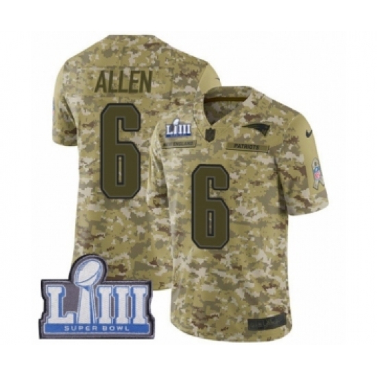 >Youth Nike New England Patriots #6 Ryan Allen Limited Camo 2018 Salute to Service Super Bowl LIII Bound NFL Jersey
