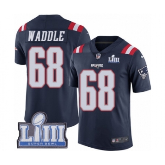 Youth Nike New England Patriots #68 LaAdrian Waddle Limited Navy Blue Rush Vapor Untouchable Super Bowl LIII Bound NFL Jersey