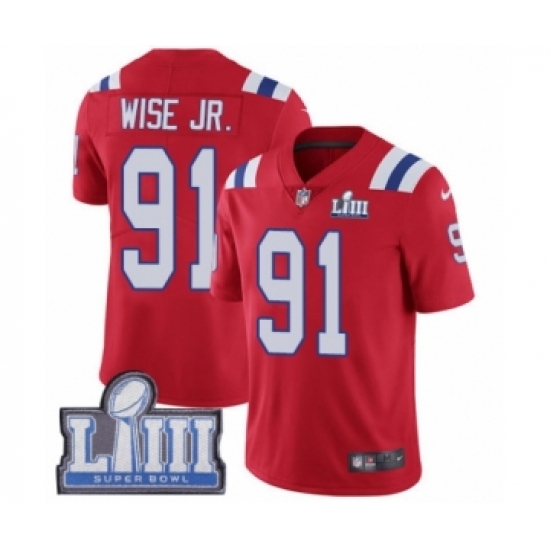 Youth Nike New England Patriots #91 Deatrich Wise Jr Red Alternate Vapor Untouchable Limited Player Super Bowl LIII Bound NFL Jersey