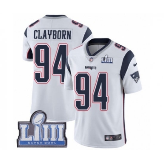 Men's Nike New England Patriots #94 Adrian Clayborn White Vapor Untouchable Limited Player Super Bowl LIII Bound NFL Jersey