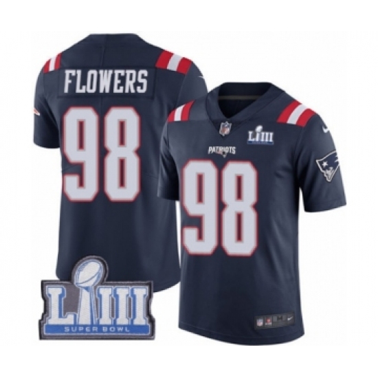 Youth Nike New England Patriots #98 Trey Flowers Limited Navy Blue Rush Vapor Untouchable Super Bowl LIII Bound NFL Jersey
