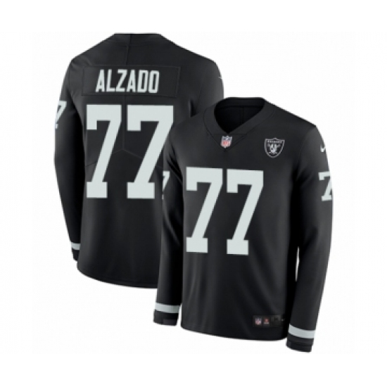 Youth Nike Oakland Raiders #77 Lyle Alzado Limited Black Therma Long Sleeve NFL Jersey