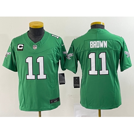 >Youth Nike Philadelphia Eagles #11 A.J. Brown Green 2023 F.U.S.E. Vapor Untouchable C Stitched Football Jersey