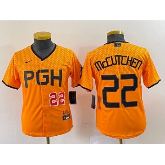 Youth Nike Pittsburgh Pirates #22 Andrew McCutchen Yellow 2023 City Connect Stitched Jersey