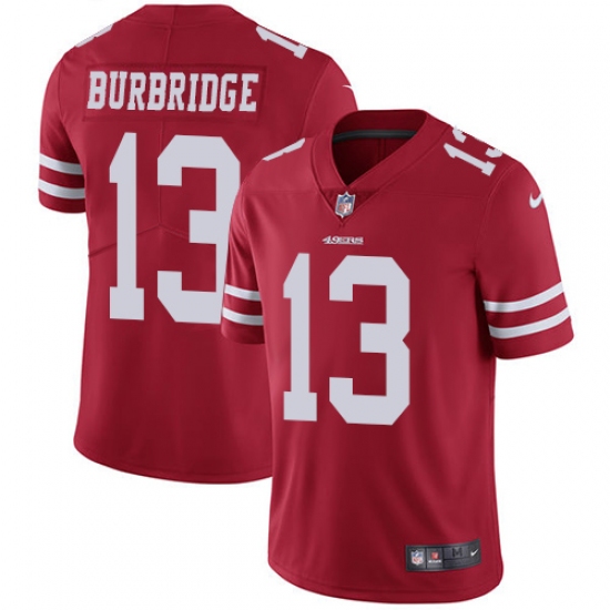Home>NFL>San Francisco 49ers>Aaron Burbridge>Youth Nike San Francisco 49ers #13 Aaron Burbridge Red Team Color Vapor Untouchable Limited Player NFL Jersey