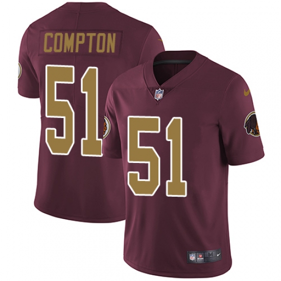 Youth Nike Washington Redskins #51 Will Compton Burgundy Red/Gold Number Alternate 80TH Anniversary Vapor Untouchable Limited Player NFL Jersey