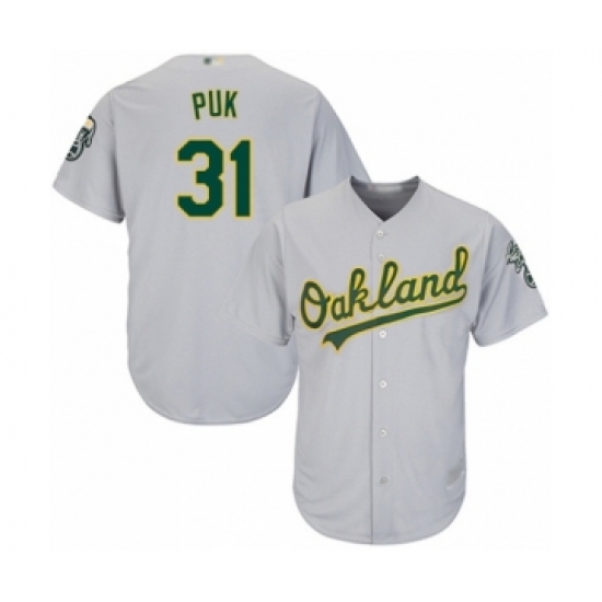 Men's Oakland Athletics #31 A.J. Puk Grey Road Flex Base Authentic Collection Baseball Player Jersey