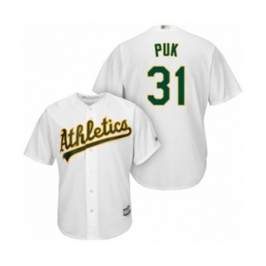 Men's Oakland Athletics #31 A.J. Puk White Home Flex Base Authentic Collection Baseball Player Jersey