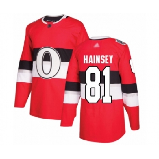 >Youth Ottawa Senators #81 Ron Hainsey Authentic Red 2017 100 Classic Hockey Jersey