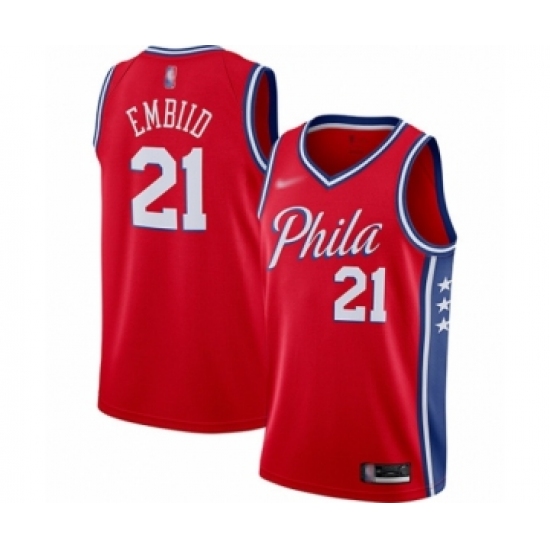 >Youth Philadelphia 76ers #21 Joel Embiid Swingman Red Finished Basketball Jersey - Statement Edition