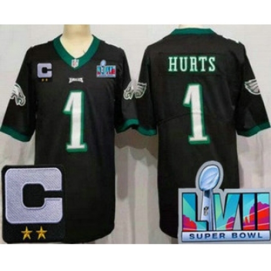 >Youth Philadelphia Eagles #1 Jalen Hurts Limited Black C Patch Super Bowl LVII Vapor Jersey