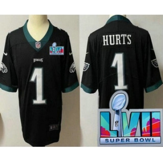 Men's Philadelphia Eagles #1 Jalen Hurts Black Super Bowl LVII Patch Vapor Untouchable Limited Stitched Jersey