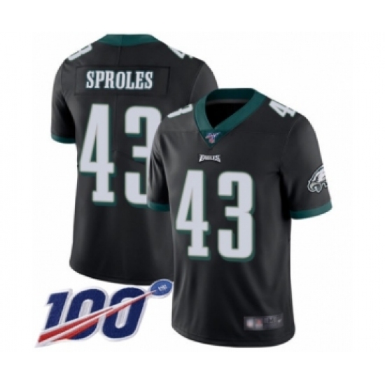 Youth Philadelphia Eagles #43 Darren Sproles Black Alternate Vapor Untouchable Limited Player 100th Season Football Jersey