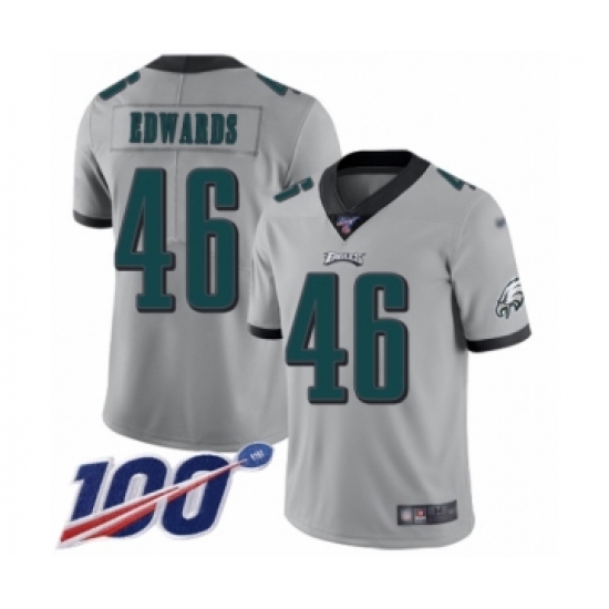 Youth Philadelphia Eagles #46 Herman Edwards Limited Silver Inverted Legend 100th Season Football Jersey