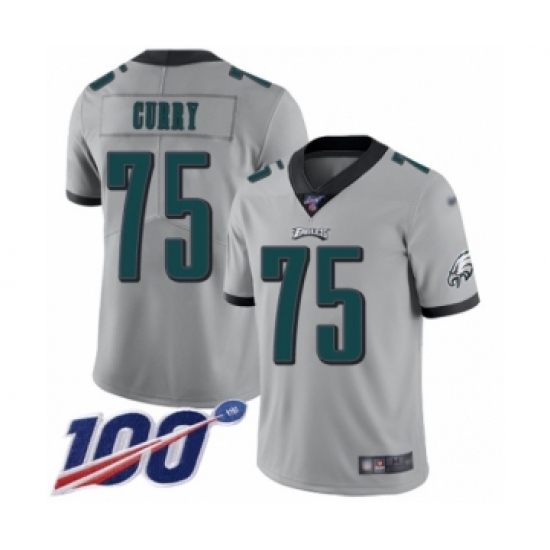 >Youth Philadelphia Eagles #75 Vinny Curry Limited Silver Inverted Legend 100th Season Football Jersey