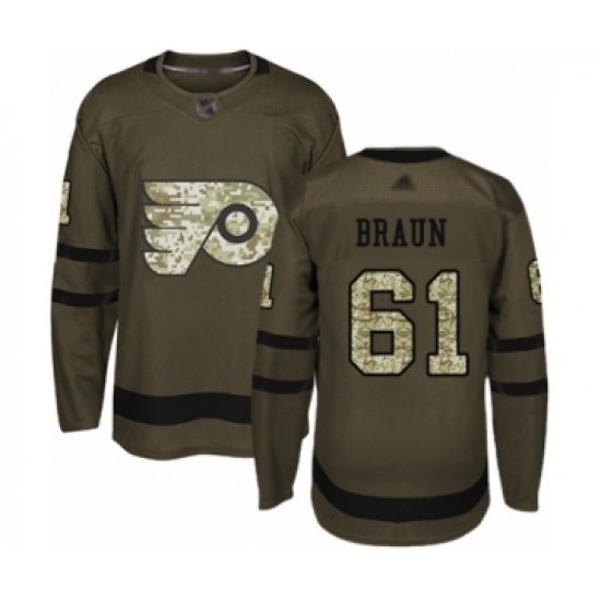 Youth Philadelphia Flyers #61 Justin Braun Authentic Green Salute to Service Hockey Jersey