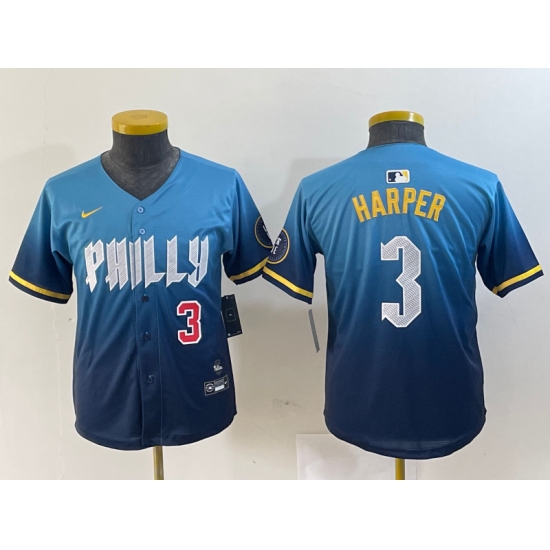Youth Philadelphia Phillies #3 Bryce Harper Blue 2024 City Connect Limited Stitched Jersey