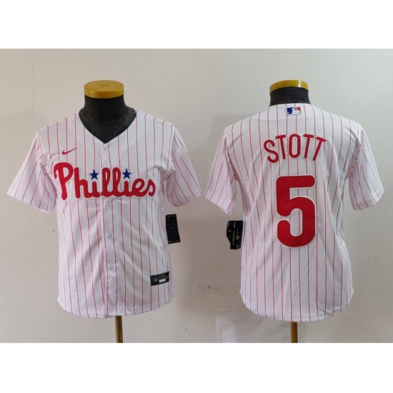 Youth Philadelphia Phillies #5 Bryson Stott White Pinstripe Stitched Cool Base Jersey