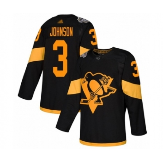 >Youth Pittsburgh Penguins #3 Jack Johnson Authentic Black 2019 Stadium Series Hockey Jersey