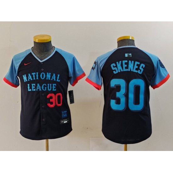 >Youth Pittsburgh Pirates #30 Paul Skenes Number Navy 2024 All Star Limited Stitched Jersey