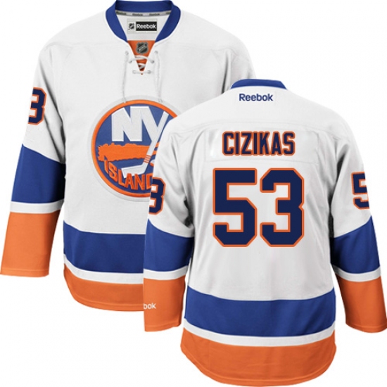 Youth Reebok New York Islanders #53 Casey Cizikas Authentic White Away NHL Jersey