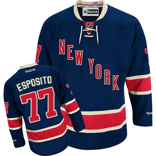 Home>NHL>New York Rangers>Phil Esposito>Youth Reebok New York Rangers #77 Phil Esposito Authentic Navy Blue Third NHL Jersey