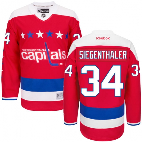 Home>NHL>Washington Capitals>Jonas Siegenthaler>Youth Reebok Washington Capitals #34 Jonas Siegenthaler Premier Red Third NHL Jersey