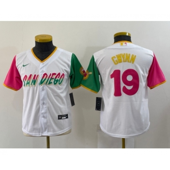 >Youth San Diego Padres #19 Tony Gwynn White 2022 City Connect Cool Base Stitched Jersey