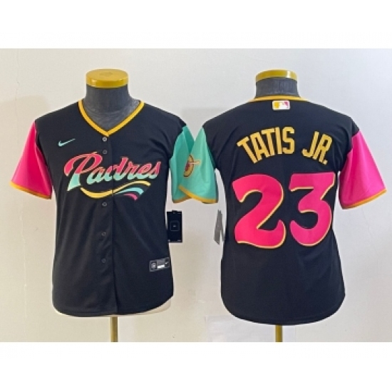 >Youth San Diego Padres #23 Fernando Tatis Jr Black 2022 City Connect Cool Base Stitched Jersey