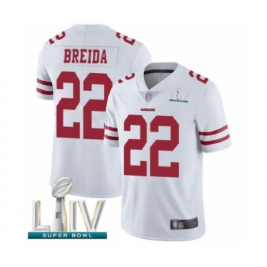 Youth San Francisco 49ers #22 Matt Breida White Vapor Untouchable Limited Player Super Bowl LIV Bound Football Jersey