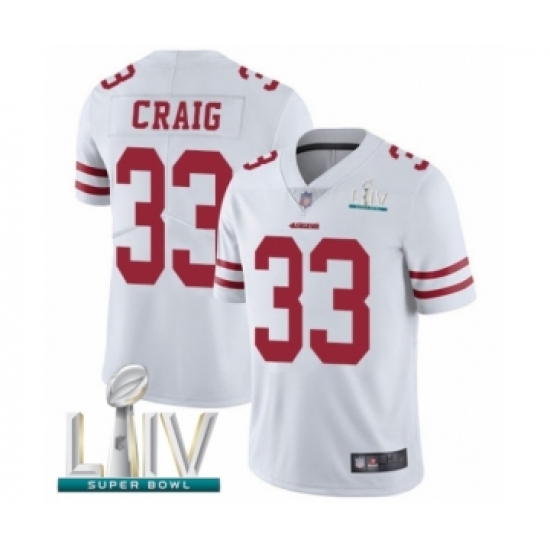 >Youth San Francisco 49ers #33 Roger Craig White Vapor Untouchable Limited Player Super Bowl LIV Bound Football Jersey