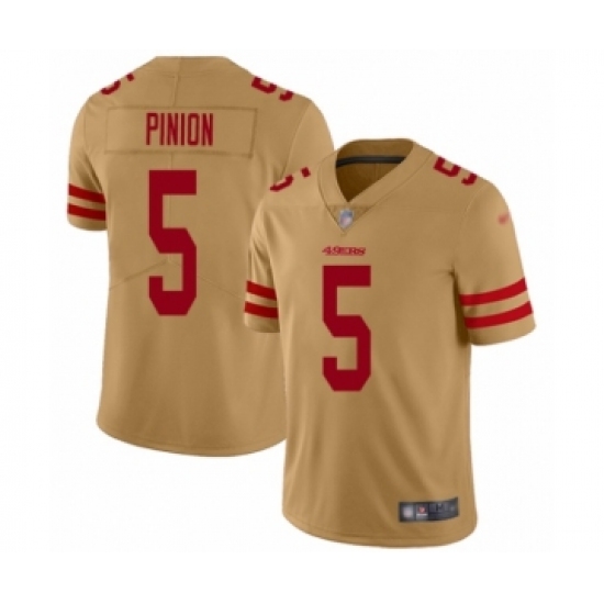 >Youth San Francisco 49ers #5 Bradley Pinion Limited Gold Inverted Legend Football Jersey
