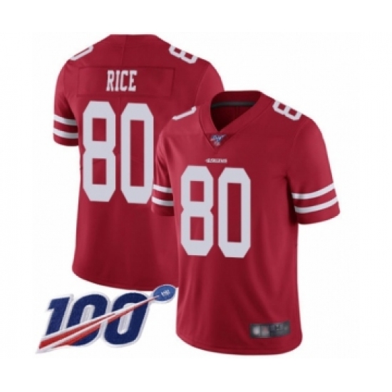 Youth San Francisco 49ers #80 Jerry Rice Red Team Color Vapor Untouchable Limited Player 100th Season Football Jersey