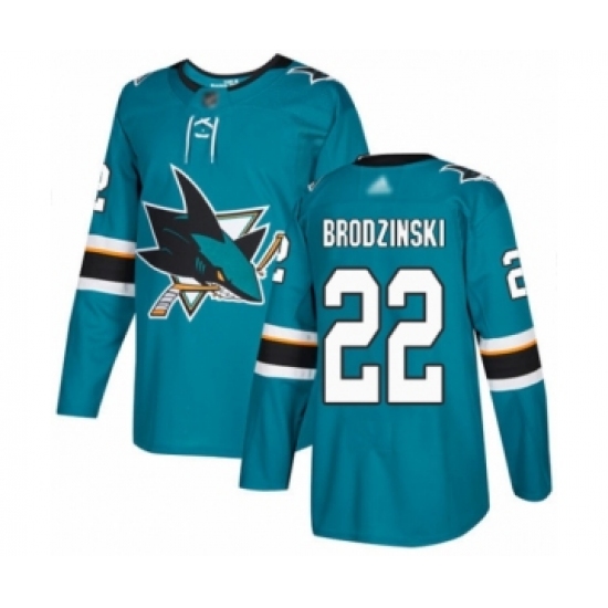 Men's San Jose Sharks #22 Jonny Brodzinski Authentic Teal Green Home Hockey Jersey