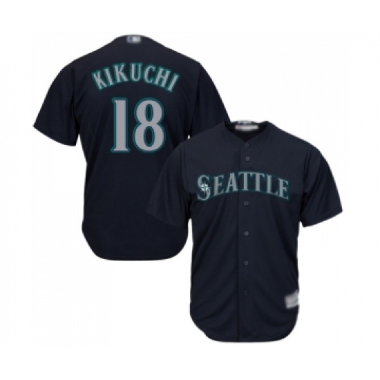 >Youth Seattle Mariners #18 Yusei Kikuchi Replica Navy Blue Alternate 2 Cool Base Baseball Jersey