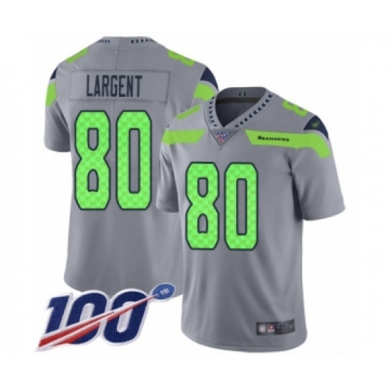 >Youth Seattle Seahawks #80 Steve Largent Limited Silver Inverted Legend 100th Season Football Jersey