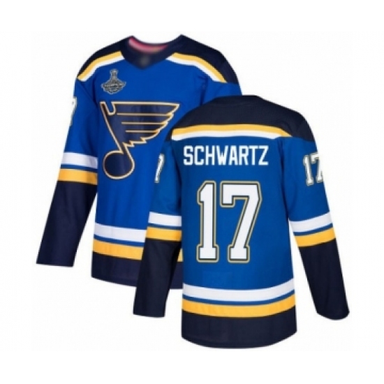 Men's St. Louis Blues #17 Jaden Schwartz Authentic Royal Blue Home 2019 Stanley Cup Final Bound Hockey Jersey