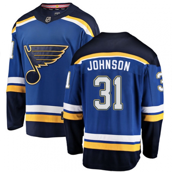 >Youth St. Louis Blues #31 Chad Johnson Fanatics Branded Royal Blue Home Breakaway NHL Jersey