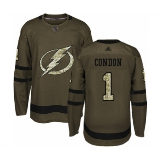 Men's Tampa Bay Lightning #1 Mike Condon Authentic Green Salute to Service Hockey Jersey