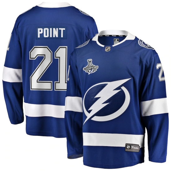 >Youth Tampa Bay Lightning #21 Brayden Point Fanatics Branded Blue Home 2020 Stanley Cup Champions Breakaway Jersey
