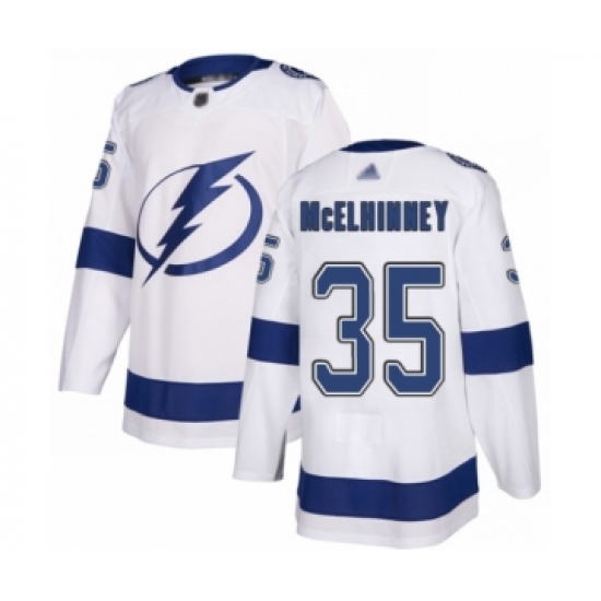 Men's Tampa Bay Lightning #35 Curtis McElhinney Fanatics Branded White Away Breakaway Hockey Jersey