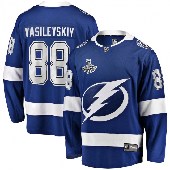 >Youth Tampa Bay Lightning #88 Andrei Vasilevskiy Fanatics Branded Blue Home 2020 Stanley Cup Champions Breakaway Jersey