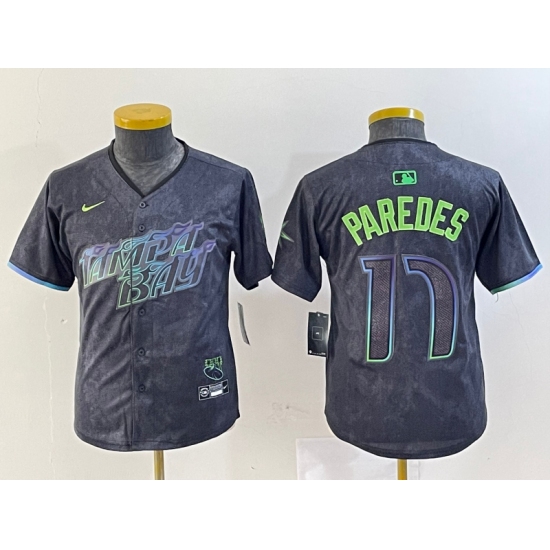 >Youth Tampa Bay Rays #17 Isaac Paredes Charcoal 2024 City Connect Limited Cool Base Jersey