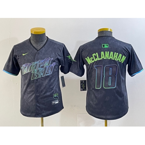 >Youth Tampa Bay Rays #18 Shane McClanahan Charcoal 2024 City Connect Limited Cool Base Jersey
