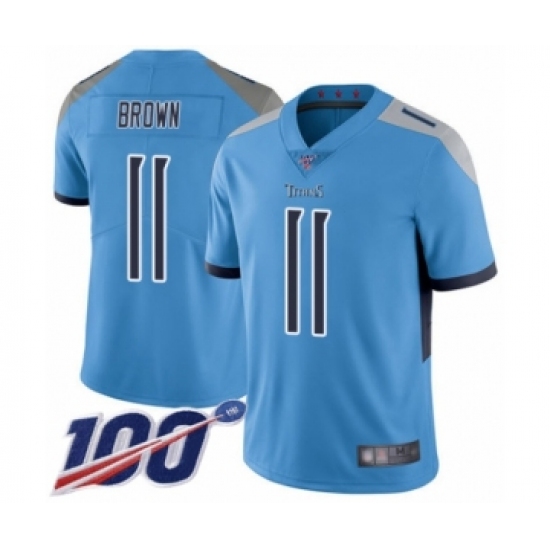 >Youth Tennessee Titans #11 A.J. Brown Light Blue Alternate Vapor Untouchable Limited Player 100th Season Football Jersey