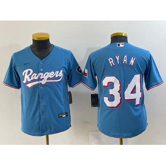 Youth Texas Rangers #34 Nolan Ryan Light Blue Team Logo Cool Base Jersey