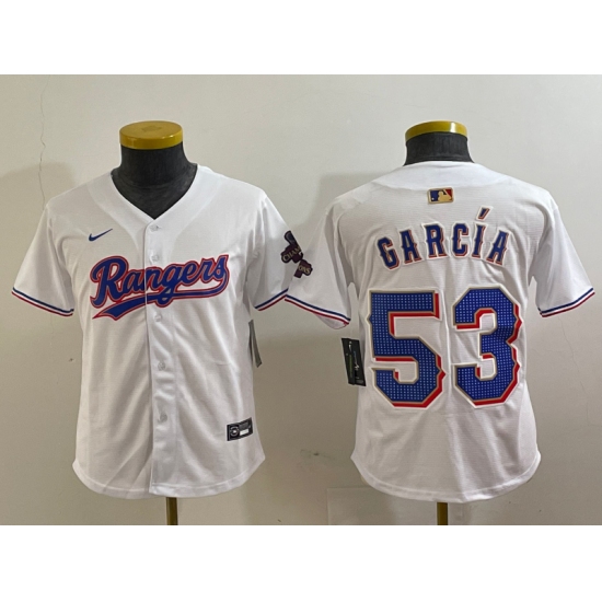 Youth Texas Rangers #53 Adolis Garcia White 2024 Gold Collection Limited Cool Base Jersey