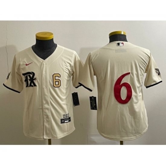 Youth Texas Rangers #6 Josh Jung Number Cream 2023 City Connect Cool Base Stitched Jersey